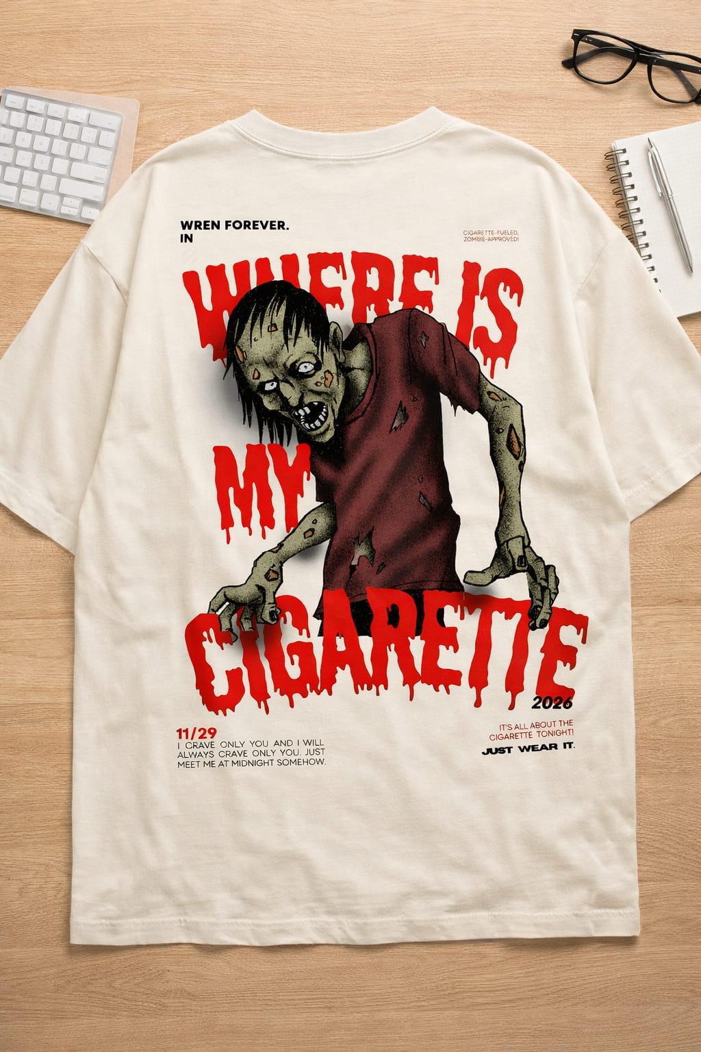 Oversized Classic T-shirts With Cigarette Cravings in Mid Night .